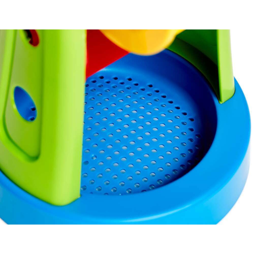 Fill the funnel and watch the wheels turn! See what happens when water, sand and small stones are poured in.