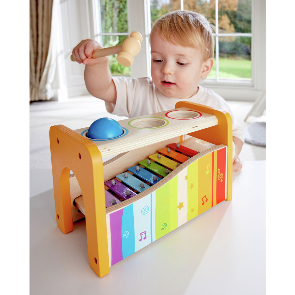 This multi-functional toy combines pounding action with melodic play, encouraging rhythm and coordination. Perfect for toddlers, it develops fine motor skills while introducing them to musical sounds and cause-and-effect relationships.