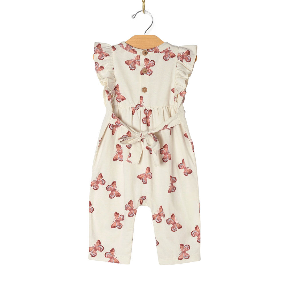 City Mouse Studio's best selling long leg romper in 100% combed cotton jersey is back in the new butterflies print. Featuring flutter sleeves, a tie-bow back, and snaps along the legs for easy changing.