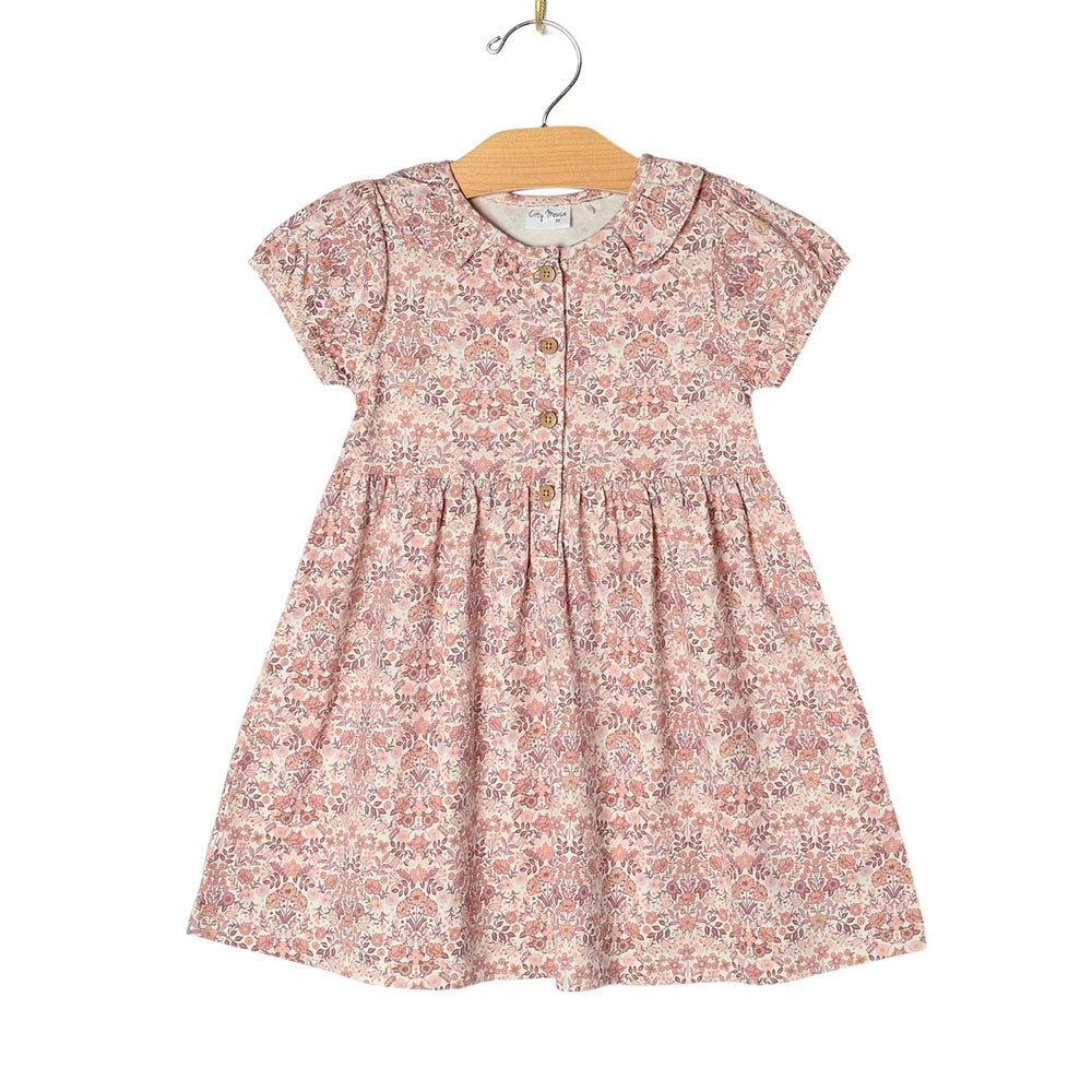She'll be ready for all your spring adventures in this City Mouse Studio frill collar dress, made with the softest 100% combed cotton jersey. In our new spring bouquet print and henley front, it's perfect for anywhere spring takes you.