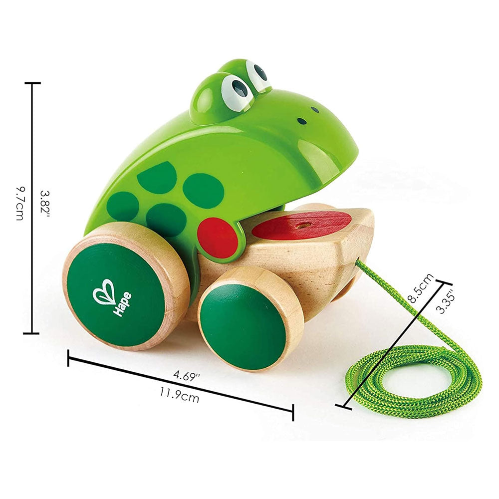 • The frog-themed pull toy is great for encouraging children to crawl and a great companion when they start to walk or run around the house