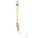 Mix of variable sizes of high quality food grade silicone beads and maple wood beads, this Moroccan inspired pacifier clip is our customers' favorite! The maple hard wood beads are made locally in North America and are hand rubbed with certified organic olive oil and organic bees wax to prevent splintering. Babies love to chew on the harder texture of the wood. The entire clip measures 10" including the loop.