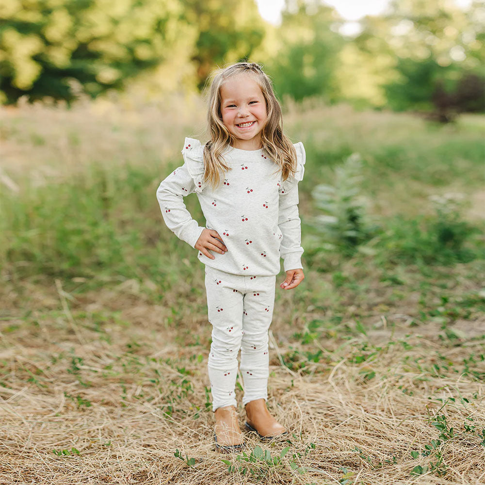 Mebie Baby french terry sets, where style meets comfort with the Baby and Kids Cherry Ruffle French Terry Set. Designed with the softest French terry fabric, these sets are perfect for keeping your little ones cozy and stylish throughout the day. Featuring adorable ruffle details, our loungewear ensures that your children not only feel comfortable but also look charming in any setting. Whether for playtime, outings, or naptime, the Mebie Baby Cherry Ruffle French Terry Set offers the ideal combination of durability and cuteness. Explore Mebie Baby's fall/winter collection today and find the perfect outfits that both you and your kids will love.