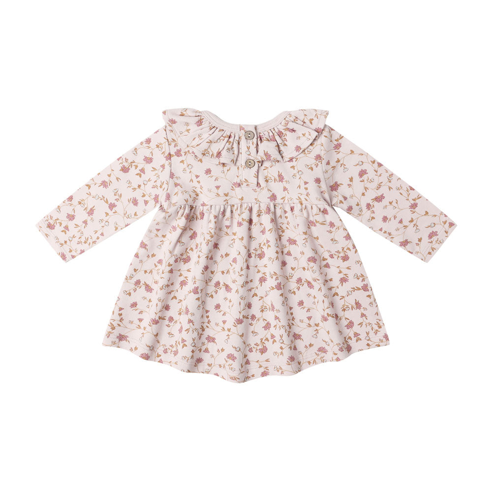 This darling dress is crafted from soft brushed jersey and features a charming collar, coordinating bloomers, and a back button placket for easy dressing. A sweet piece for everyday wear.